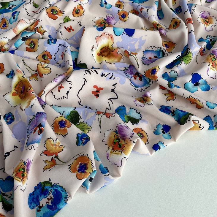 М’яка, ніжна на дотик тканина з матовим фінішем дарує приємні тактильні відчуття, красиво драпірується та не просвічує. Завдяки оптимальній щільності та легкому стрейчу, ця тканина чудово сидить по фігурі, не обмежує рухів і не потребує складного догляду.
