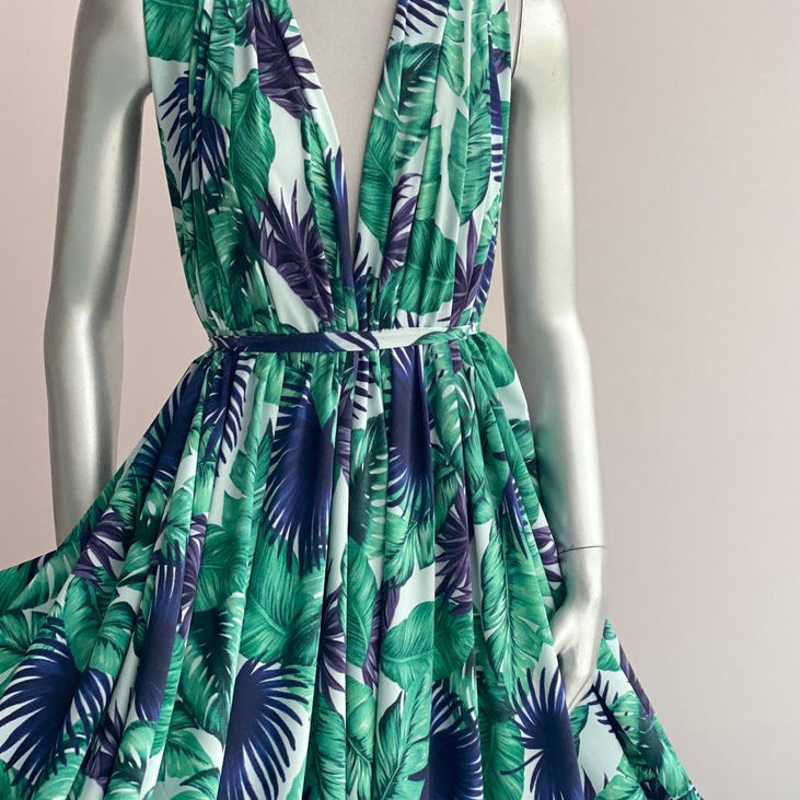 Рекомендації: Тканина не потребує складного крою — краще надати перевагу простим лініям, які дозволять принту “говорити” самим за себе. Добре поєднується з аксесуарами у відтінках фіалки, м’яти, смарагду або бежевого.