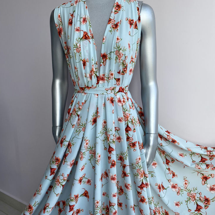 Рекомендації: Її можна поєднувати з однотонними тканинами у відтінках кремового, оливкового, персикового або білого кольору. Прекрасний вибір для створення капсульного літнього гардеробу, що дарує і комфорт, і wow-ефект.