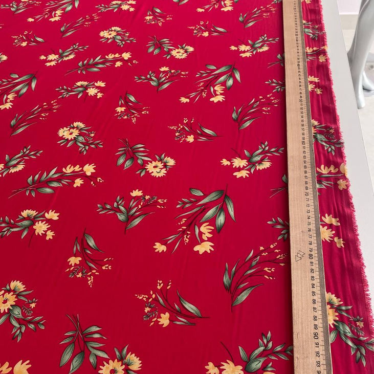 Будьте першим, хто залишив відгук на “Суперсофт червоно-рожевого кольору з рідко розташованими бежевими квітами і зеленим листям”