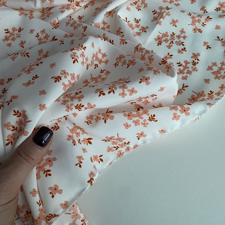 Тканина має м’яку, шовковисту текстуру, приємну до тіла, чудово драпірується та майже не мнеться. Вона легка, дихаюча, не просвічує, ідеально підходить для створення елегантних речей, що виглядають ніжно та естетично у кожному русі.