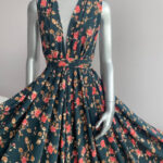 Основний колір — глибокий темно-зелений, як густий листяний сад або смарагдовий ліс. На цьому насиченому фоні розквітають червоні та рожеві троянди