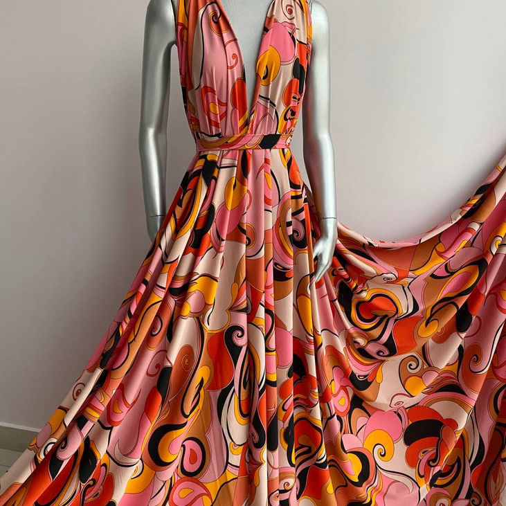 Суперсофт з великим абстрактним принтом у стилі Emilio Pucci у помаранчево-коричневій палітрі