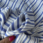 Суперсофт з вертикальними блакитними смужками різної ширини на молочно-білому фоні
