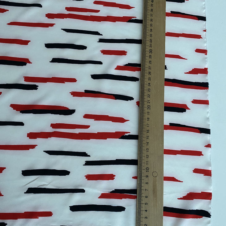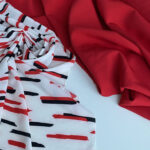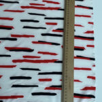 Купити тканину суперсофт з червоними та чорними розчерками на біло-молочному фоні можна вже сьогодні в нашому магазині! Доступна як оптом, так і в роздріб. Швидка доставка по Україні.