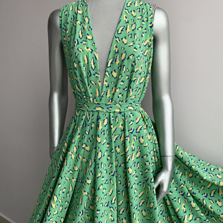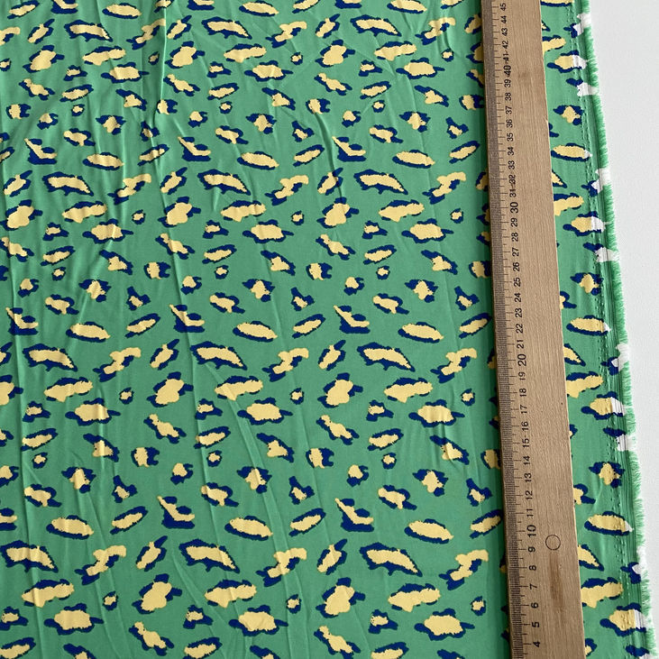 Поєднання природного зеленого тону з бежевими ляпками у стилі лео створює ефект благородної дикості з елегантною ноткою, що вирізняє тканину серед інших animal-дизайнів.