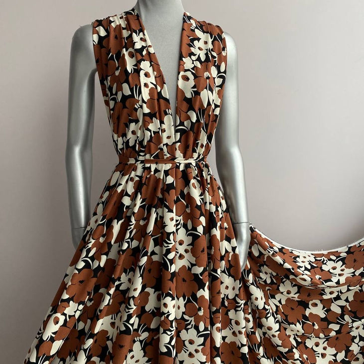 Будьте першим, хто залишив відгук на “Тканина штапель коричневий з крупними чорно-білими квітами”