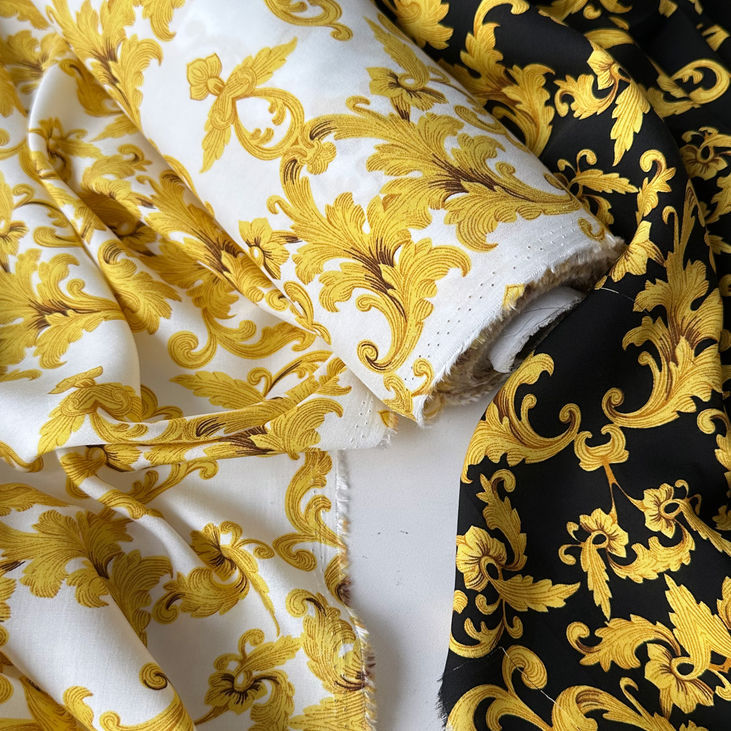 В роботі вона дуже зручна: не сковзає, не деформується, легко кроїться й приємно ш’ється. Добре тримається у швах, не втрачає структури після прання й зберігає яскравість принта.