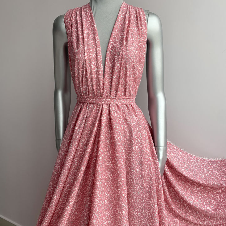 Хочете купити штапель тканину з ніжним квітковим принтом? Цей варіант — влучне поєднання натурального складу, витонченого дизайну й зручності в роботі. Ідеально підходить для пошиття літнього одягу, який хочеться носити знову і знову.