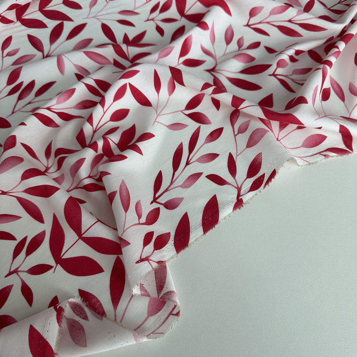 Будьте першим, хто залишив відгук на “Тканина штапель рідко розташоване червоне листя на білому”