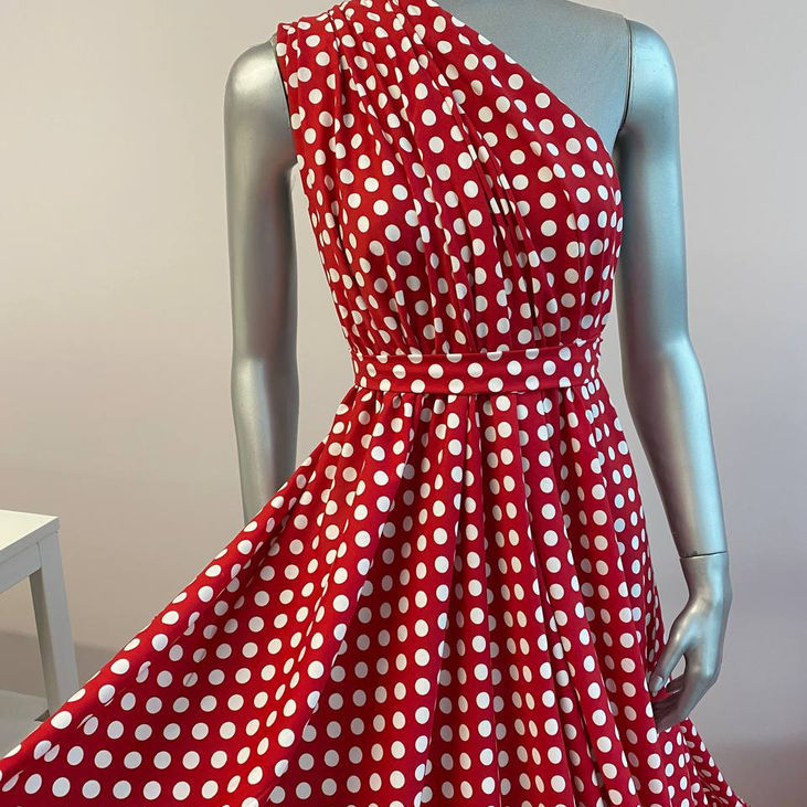 Білий горошок на контрастному фоні додає тканині вінтажної чарівності, яка ніколи не виходить з моди.