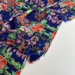 Внесіть яскравість та етнічний шарм у свій гардероб — замовляйте штапель яскраво-синій з помаранчево-зеленими квітами вже сьогодні!