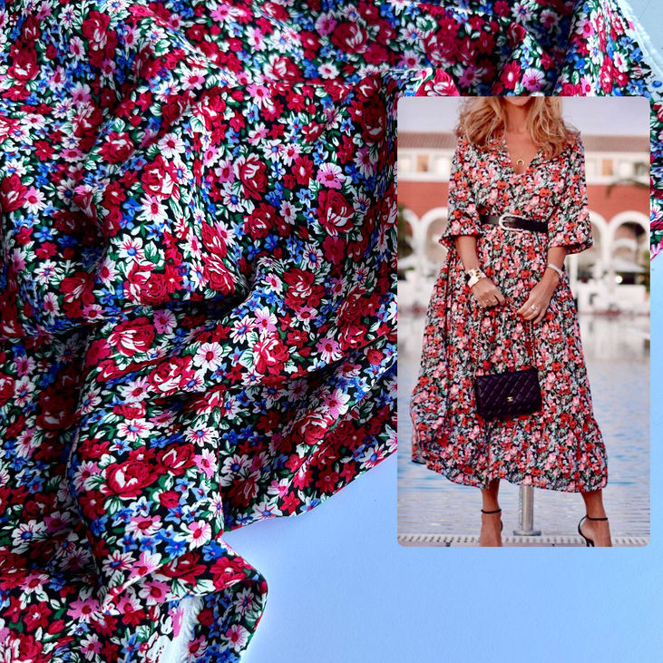 Будьте першим, хто залишив відгук на “Тканина штапель з міленькими червоно-блакитними густими квіточкаами”