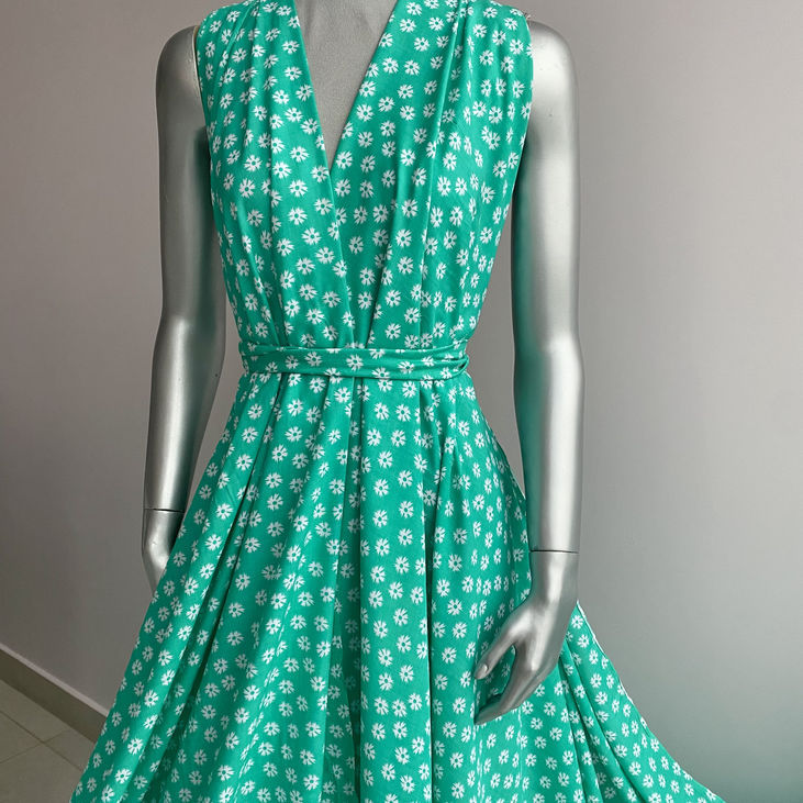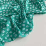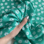 Додайте ніжності та свіжості у свій гардероб — замовляйте штапель зеленкувато-бірюзового кольору з білими квіточками вже сьогодні!