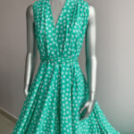 Штапель зеленкувато-бірюзового кольору з білими квіточками