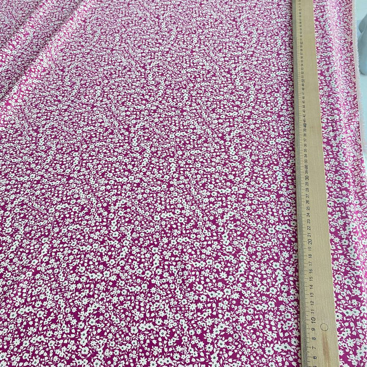 Замовляйте італійську віскозу з білими квіточками на темно-фуксиевому фоні — створюйте неповторні і комфортні речі з натуральної тканини преміум-якості
