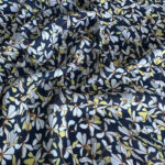 Італійська віскоза з жовто-біло-сірими квітами на темно-синьому фоні
