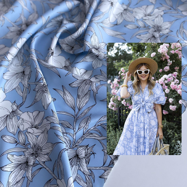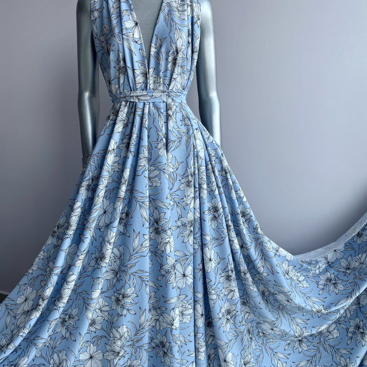 Голубий відтінок приносить відчуття свіжості, як ранкове небо, а стильний білий флористичний принт у графічному стилі створює сучасний і витончений вигляд.
