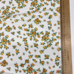 Віскоза твіл з міленькими жовтими квіточками та зеленим листям на білому фоні