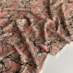 Віскоза твіл пудрово-рожевого кольору з ніжними пролісками