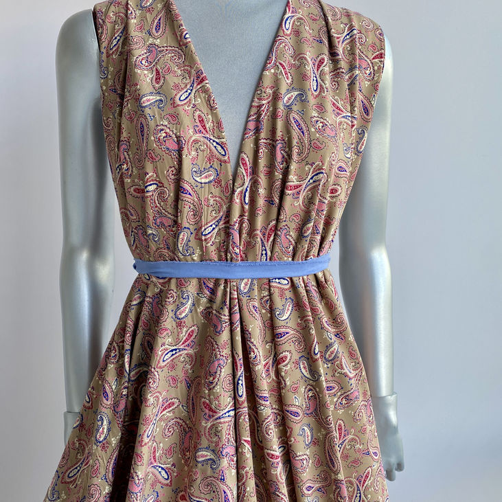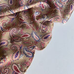 Темно‑бежевий фон з турецьким мотивом у формі “огірків” додає шарму й вишуканої геометричної структури. Цей мелодійний принт, виконаний у класичних контурах, створює атмосферу свіжості та легкої екзотичності.