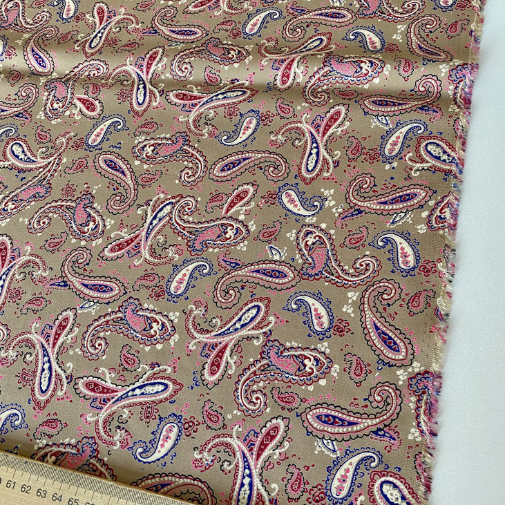 Віскоза твіл з принтом «турецькі огірки» на темно-бежевому фоні