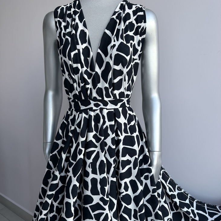 Замовляйте віскозу жату з принтом “жираф” прямо зараз – стильна тканина для модного одягу. Опт і роздріб, швидка доставка по Україні.