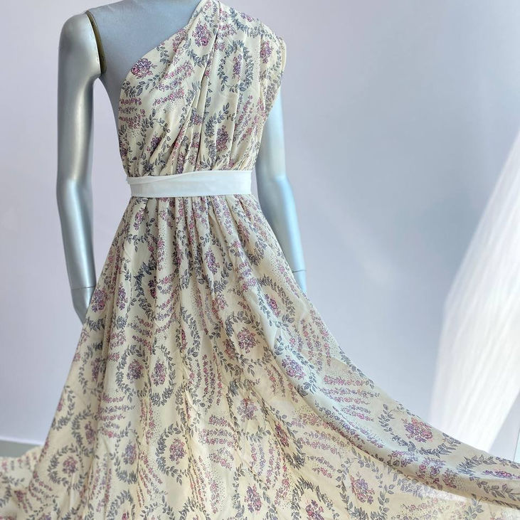 Цей романтичний і делікатний принт надає тканині вишуканості та свіжості, а матеріал відзначається м’якістю, хорошою драпірувальністю і комфортом.