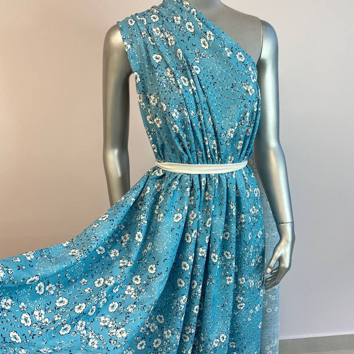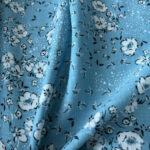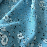 Віскозний льон насиченого блакитного кольору з білими квітами