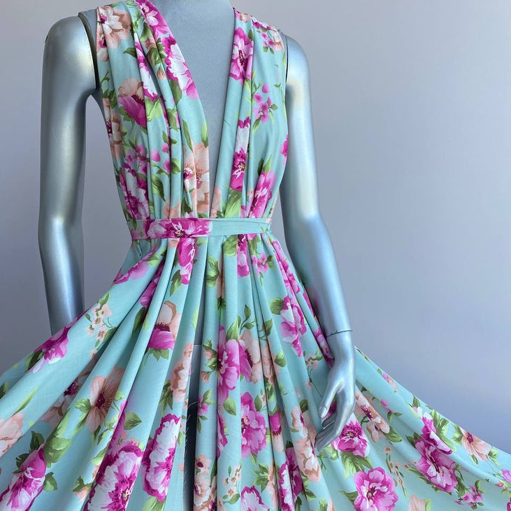 Ідеї для пошиття: елегантні літні сукні або сарафани з об’ємними рукавами, жіночні блузи з оборками або рюшами, романтичні спідниці або шорти, комбінезони, кюлоти або вільні костюми для повсякденного образу, дитячі сукні, що виглядають святково