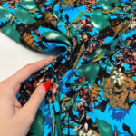 Будьте першим, хто залишив відгук на “Віскозний льон яскравого бірюзового кольору з акбтракційним малюнком в коричнево-рижій гамці”