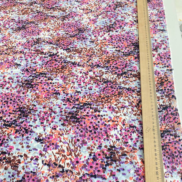 Будьте першим, хто залишив відгук на “Віскозний льон з розсипом міленьких квіточок кольору фуксіі та кориневатих листиків на світлому фоні”
