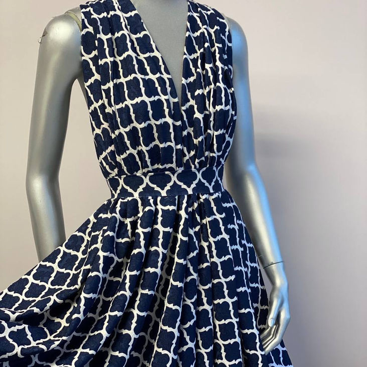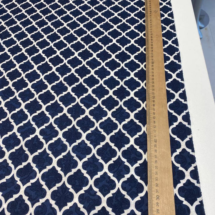 Замовляйте жакард темно-синього кольору з білим вензелем — ідеальне поєднання глибоких відтінків і вишуканої класики.